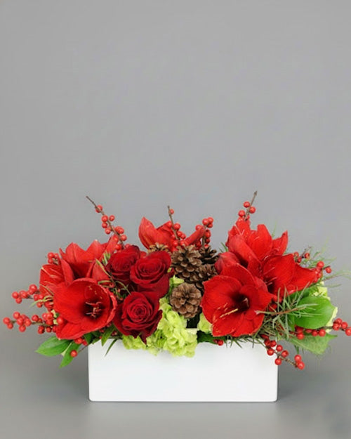 Prepare to captivate your guests. The Holiday Glamour arrangement is where luxury florals meet high-design drama, creating an undeniable focal point for your celebrations. This masterpiece is defined by its sophisticated use of classic colors, rich textures, and deep, jewel-toned colors, designed for those who believe the holidays should be nothing less than spectacular.