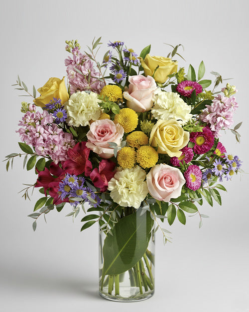 Delight in the fresh hues of spring brought indoors. Our florists hand-craft each arrangement to feature a blend of seasonal blooms that evoke joy, renewal, and warmth. Whether it's for a gift, centerpiece, or just to lift spirits, this vase arrangement is bound to make a statement.