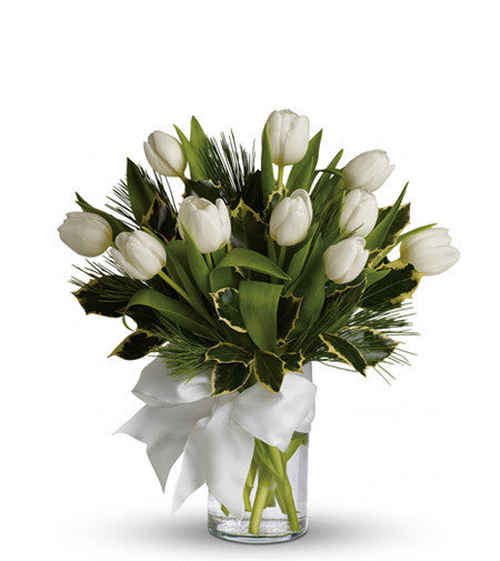 Witness the magical moment where two seasons beautifully collide. Our Tulips and Pine bouquet is a hopeful, fresh take on winter florals, blending the cheerful, upward-reaching stems of seasonal tulips with the rustic, fragrant branches of evergreen pine. This arrangement symbolizes resilience, new beginnings, and the enduring beauty of nature through every season.
