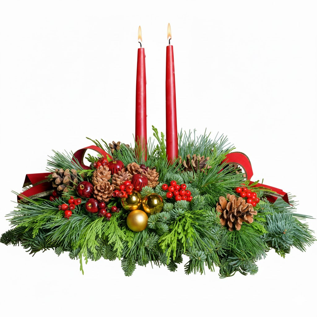 For those who cherish the classic beauty of the holidays, this centerpiece is your essential finishing touch. Our Classic Holiday Centerpiece embodies the traditions we hold dear, featuring a lush, abundant mix of rich reds, and evergreens. It’s designed to be the heart of your festivities, creating a warm, welcoming, and unmistakably festive atmosphere that never goes out of style.