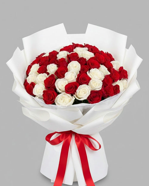 50 Red & White Roses Deluxe Bouquet