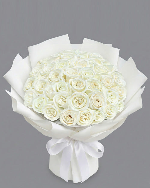 50 White Roses Deluxe Bouquet